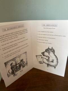 Retirement Service? Yes, in our pet union booklet, pets receive retirement services. Any grievances? The union booklet has a Grievance Form! Not to mention breaks, birthdays, entertainment, etc! Our Collardarity House is presented in this section.